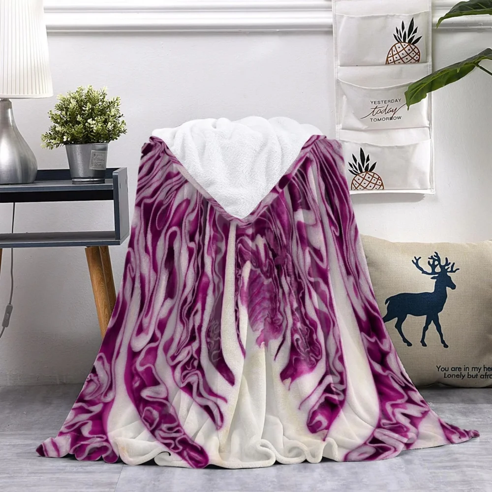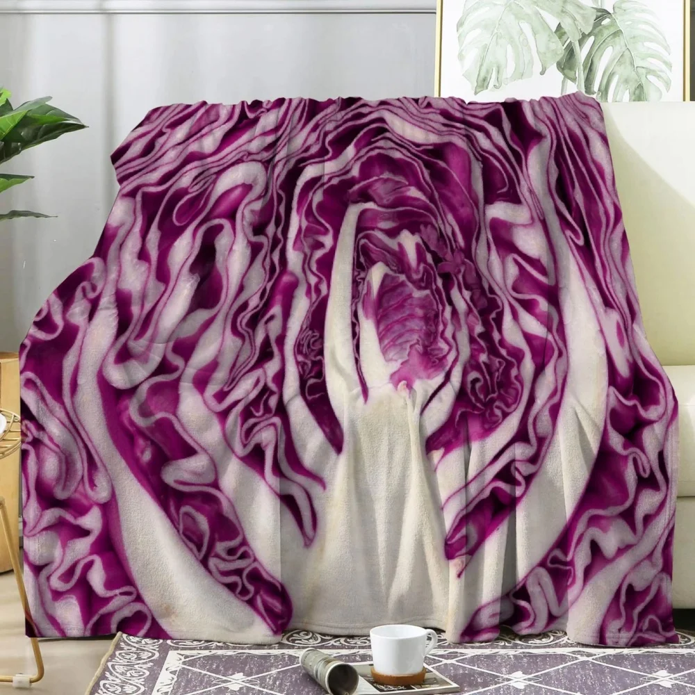 1 Pcs Adult Blanket,Purple Cabbage Blanket Throw Blanket,Single-Sided Funny Vegetable Blanket for Everyone,Novelty Gifts for Teens