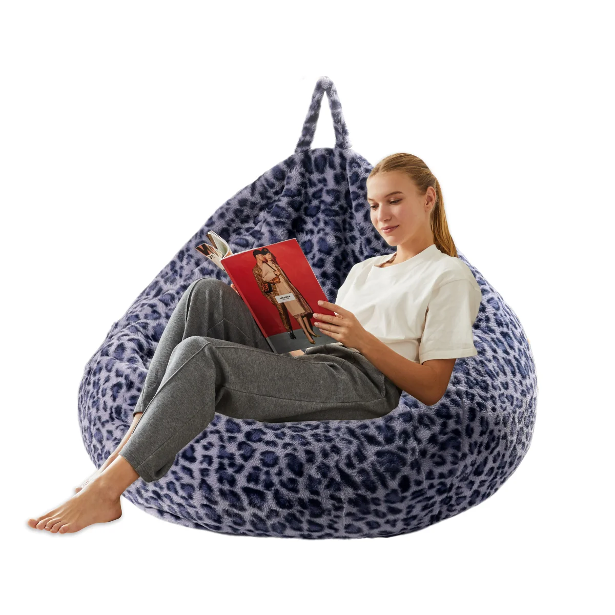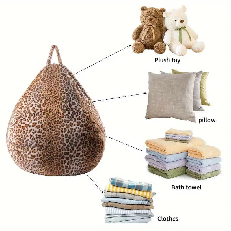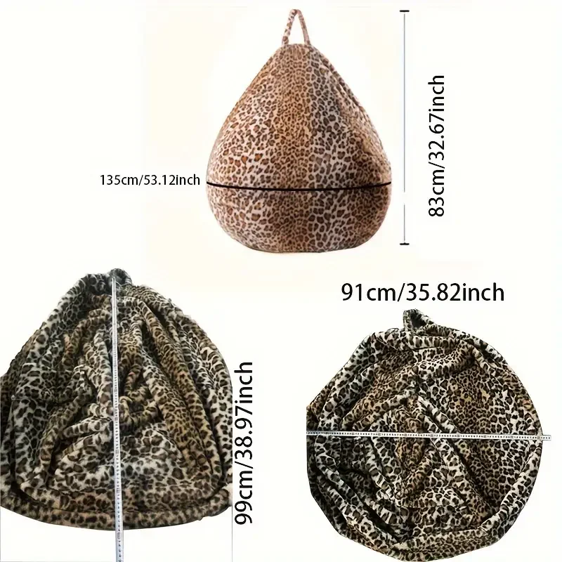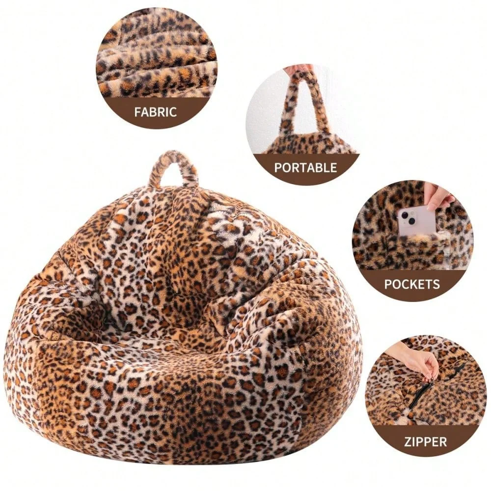 A Classic Leopard-Print Bean Bag Sofa Cover Without Filling, Portable Storage Bag, Multi-Purpose Bean Bag for Home and Outdoor Use