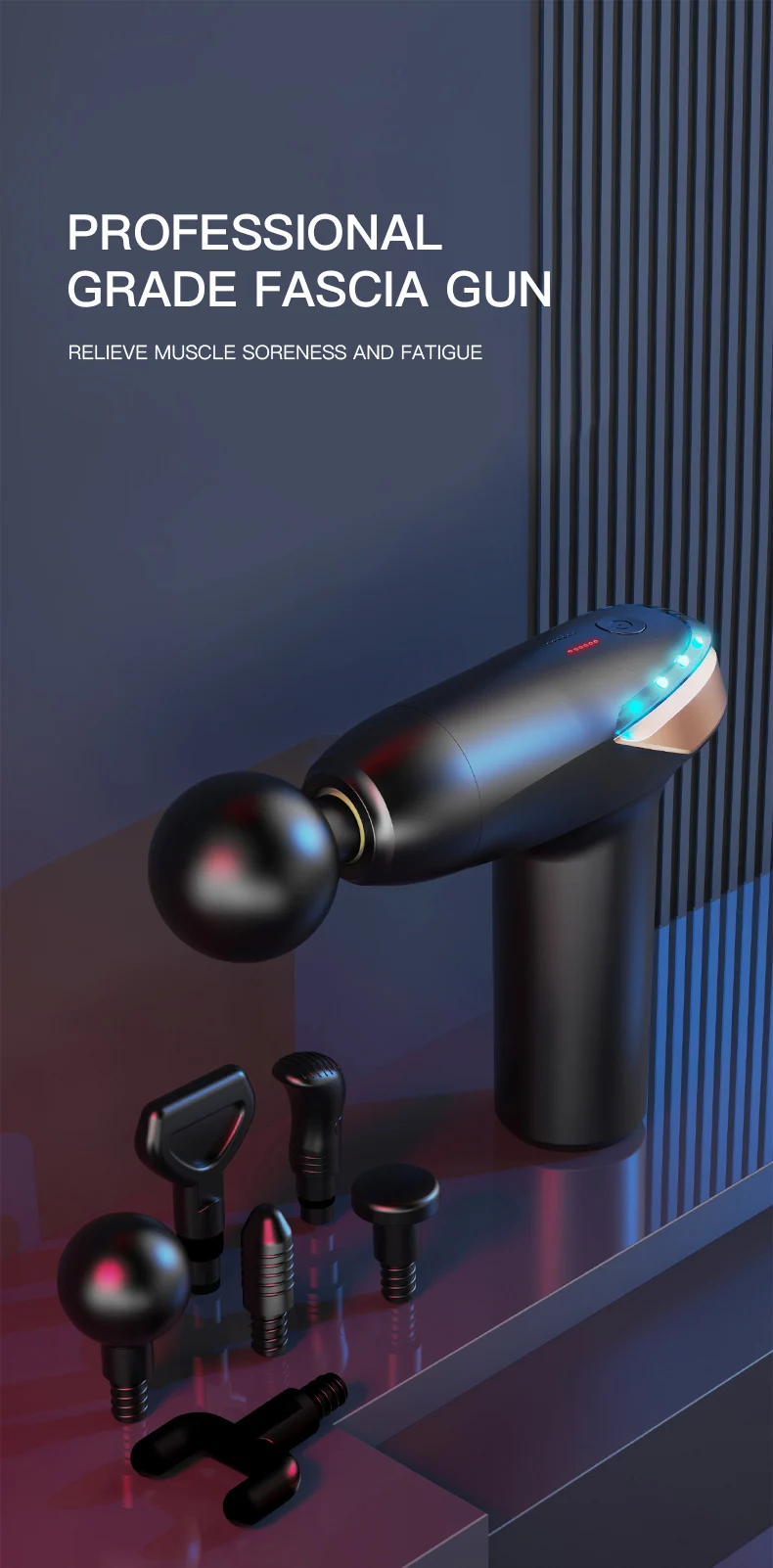 Kh866 2025 New Model Fascia Gun Muscle Relaxation Electric Vibration Massage Gun Mini 6-Speed Massage Fascia Gun with 6 Massage Heads