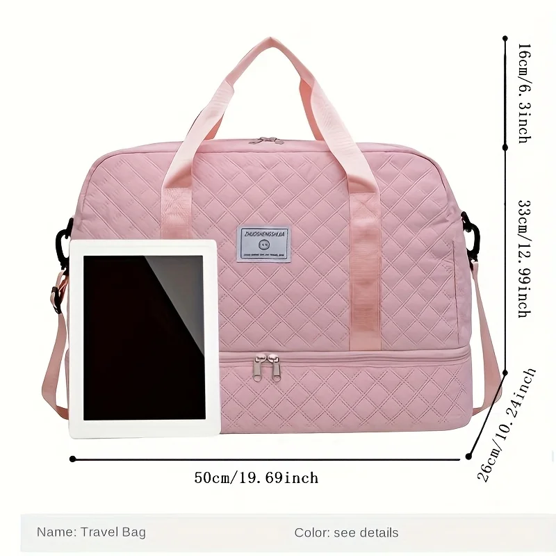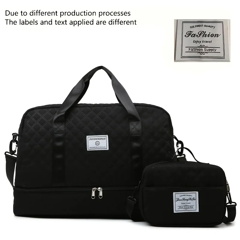 Nylon Waterproof Outdoor Travel Tote Bag + Travel Cosmetic Bag, Multifunctional Portable Large-Capacity Tote Bag, Unisex Storage Bag, Sports and Fitness Bag, Suitable for Outdoor Travel, Short-Distance Business Trips, Fashionable, Simple, Lightweight, and Suitable for Hiking