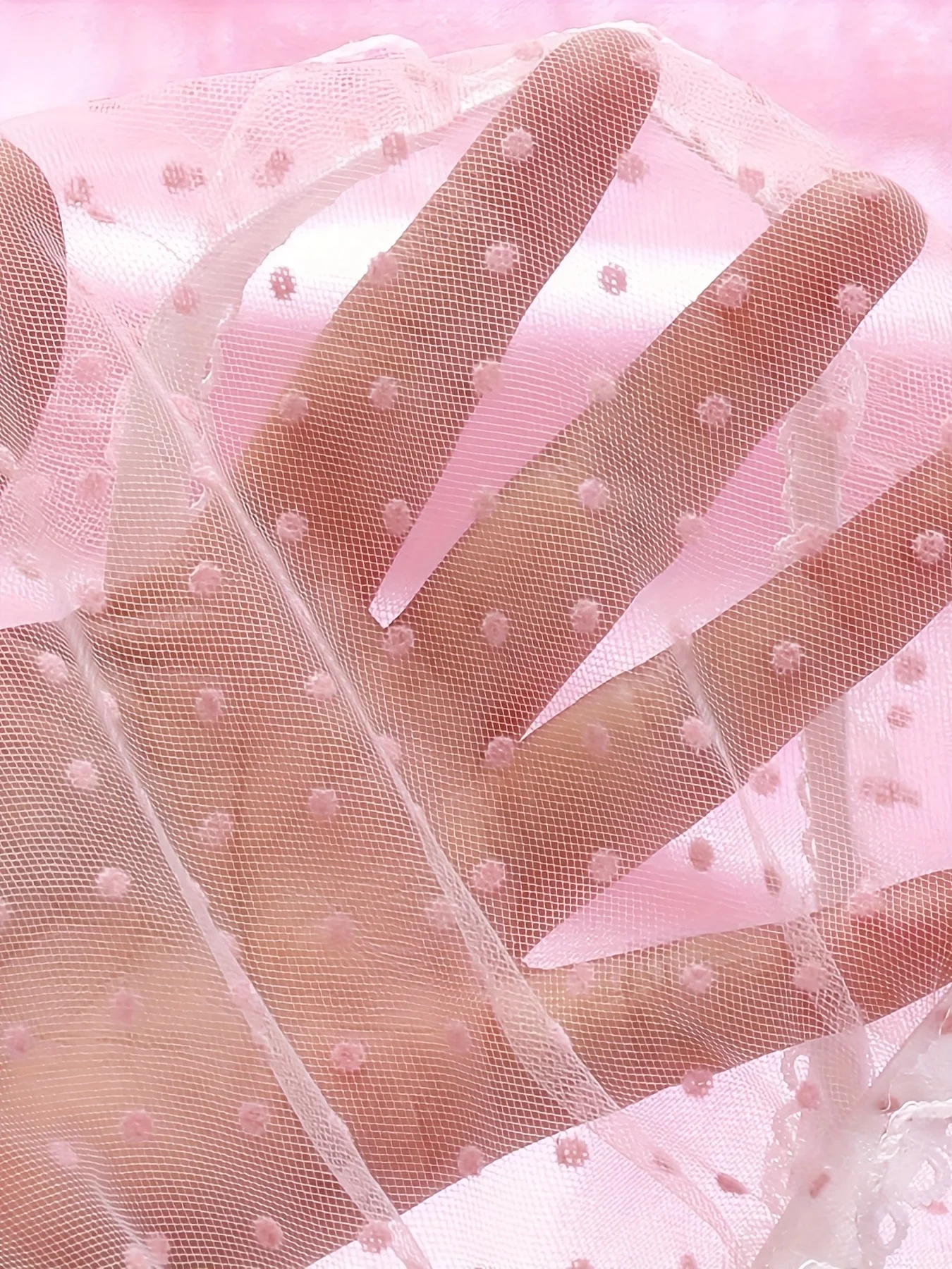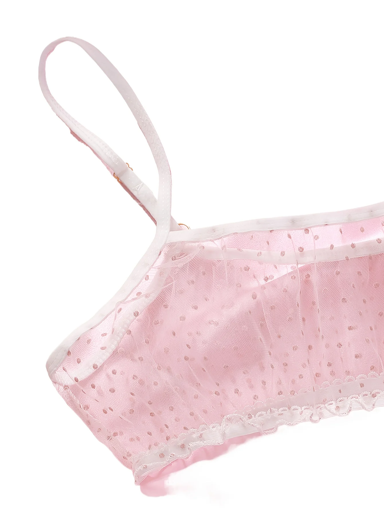 Women’s Sexy Pink See-Through Polka Dot Mesh Lingerie Set Sexy Underwear (Top Bra + Bottom Briefs)